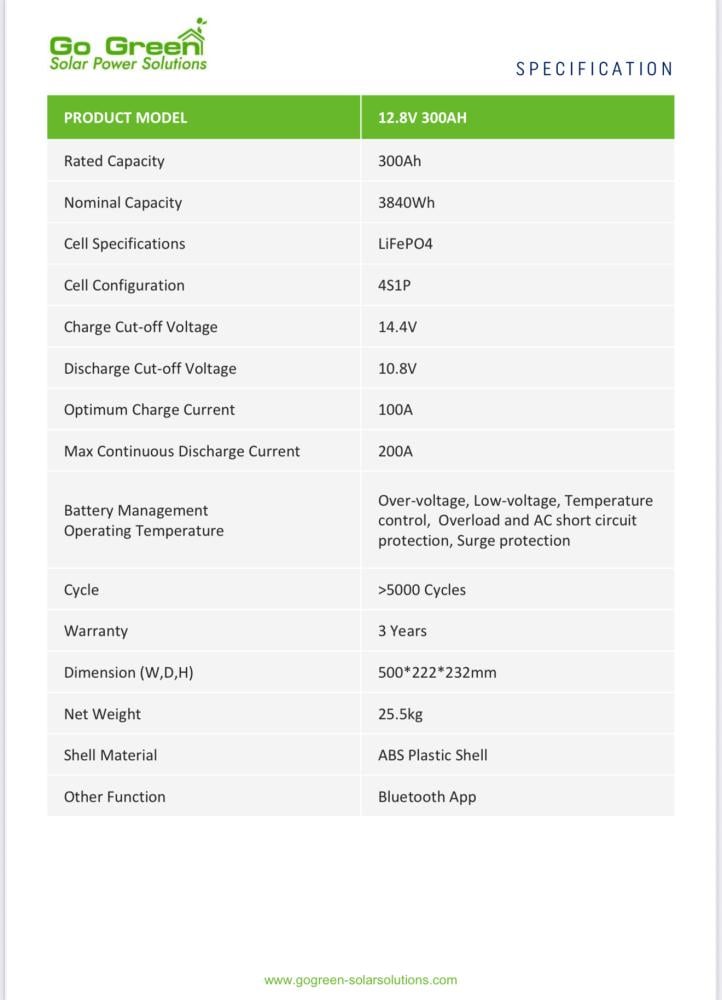 - نوع البطارية LiFePo4