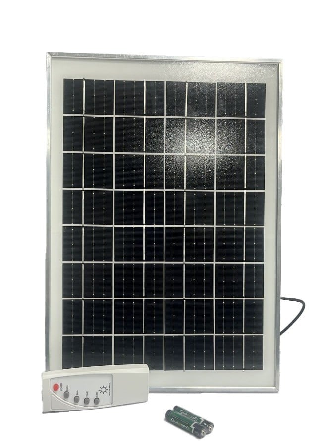 - لوح شمسي: لوح شمسي 18 فولت 12 وات مع سلك بطول 3 متر.