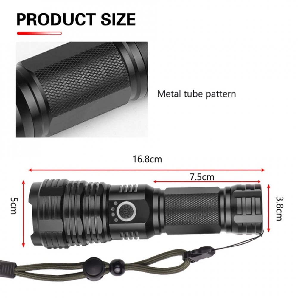 احصل على كشاف يدوي عالي الأداء مع خاصية الزوم، موديل JX-82-20W، مصمم لتوفير إضاءة قوية تصل إلى 1000 متر. مثالي للاستخدامات المتعددة مثل التخييم، الصيد، والأنشطة الخارجية بفضل قوة إضاءة P50 وتقنية الزوم المتقدمة.