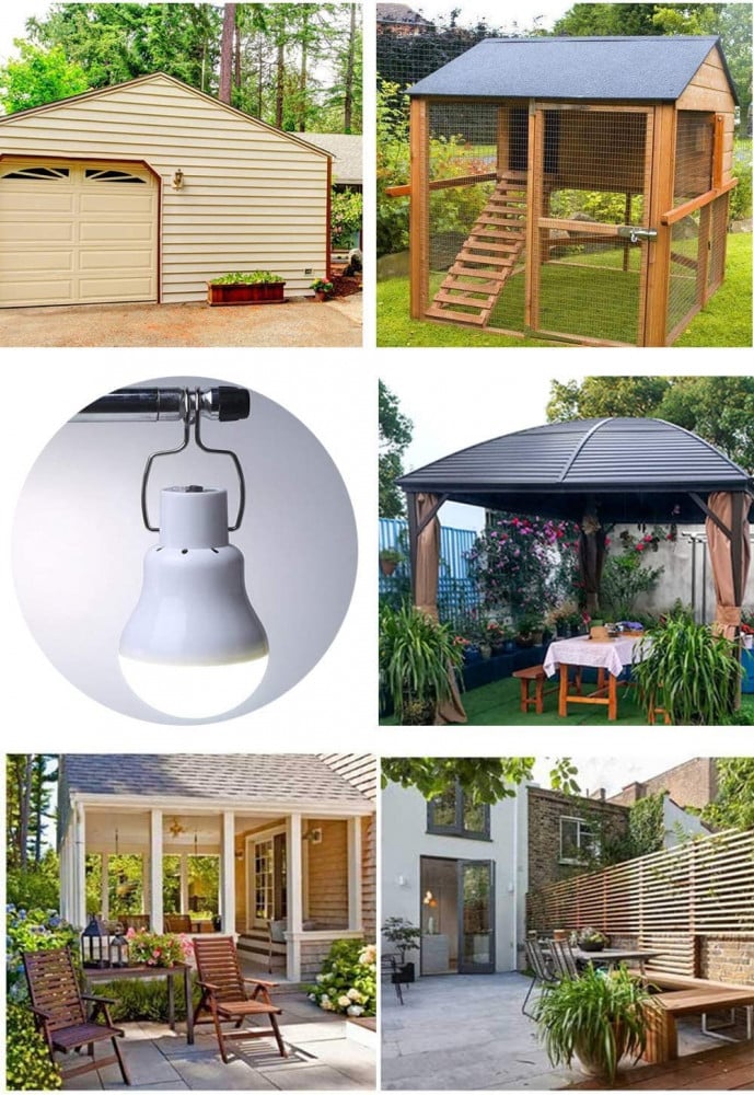 لمبة متنقلة متعددة الاستخدامات تعمل بالطاقة الشمسية وبطارية داخلية قابلة لإعادة الشحن. مثالية للاستخدام في التخييم، الصيد، والتنزه، بالإضافة إلى إضاءة الأماكن الخارجية مثل سخيّر الدجاج خلال الأعاصير.
