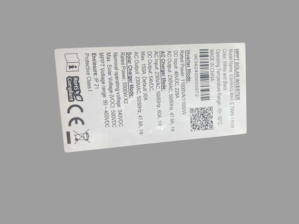 - اسم الموديل: إشراق ماكس إي توين 11 كيلو وات