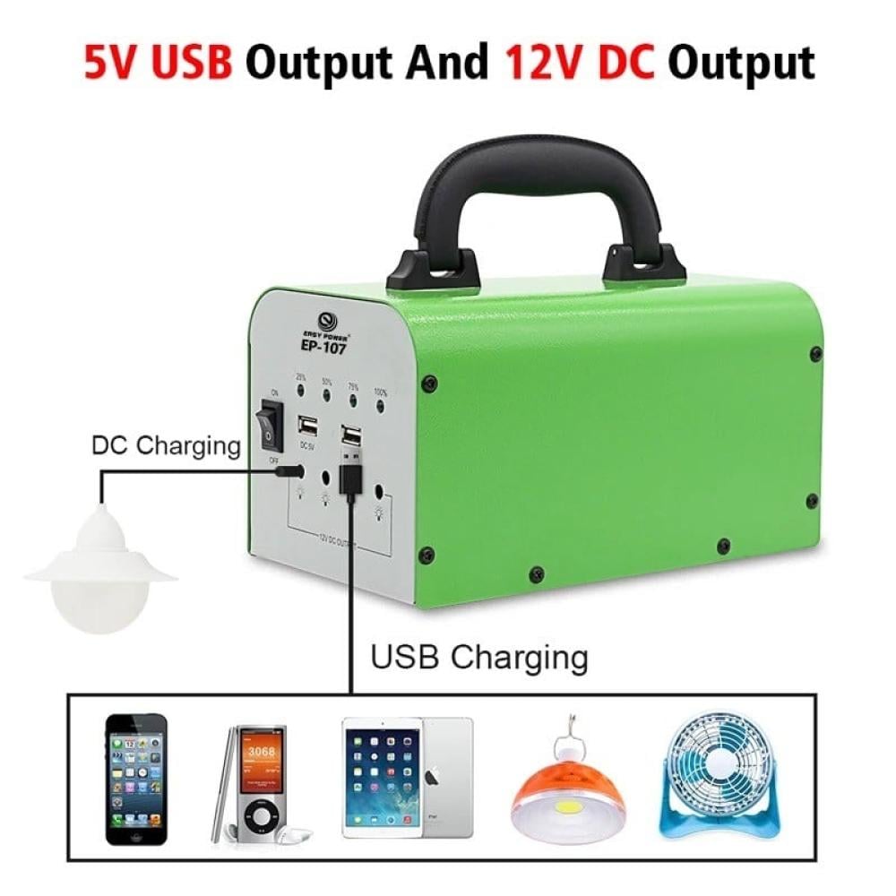 - مصدر شحن مزدوج: يمكن شحن المنظومة باستخدام الطاقة الشمسية أو الكهرباء العادية.