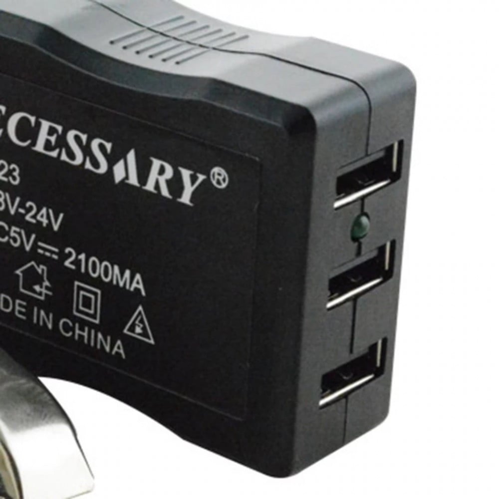 شاحن متعدد الوظائف مصمم للعمل على أنظمة 12 فولت و 24 فولت، مزود بثلاثة منافذ USB لدعم الشحن السريع لمختلف الأجهزة. مثالي للاستخدام في السيارات، الشاحنات، وعربات التخييم، مما يوفر شحنًا موثوقًا وسريعًا لأجهزتك الإلكترونية أثناء التنقل.