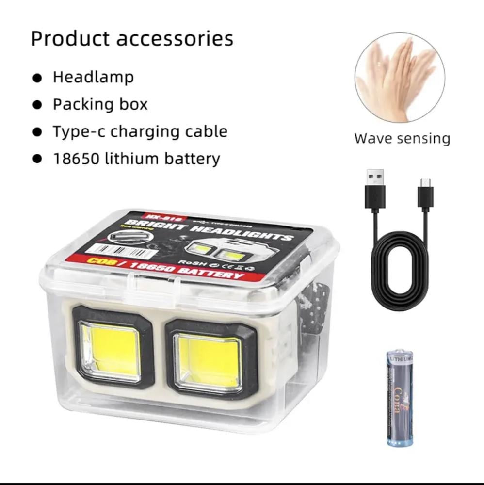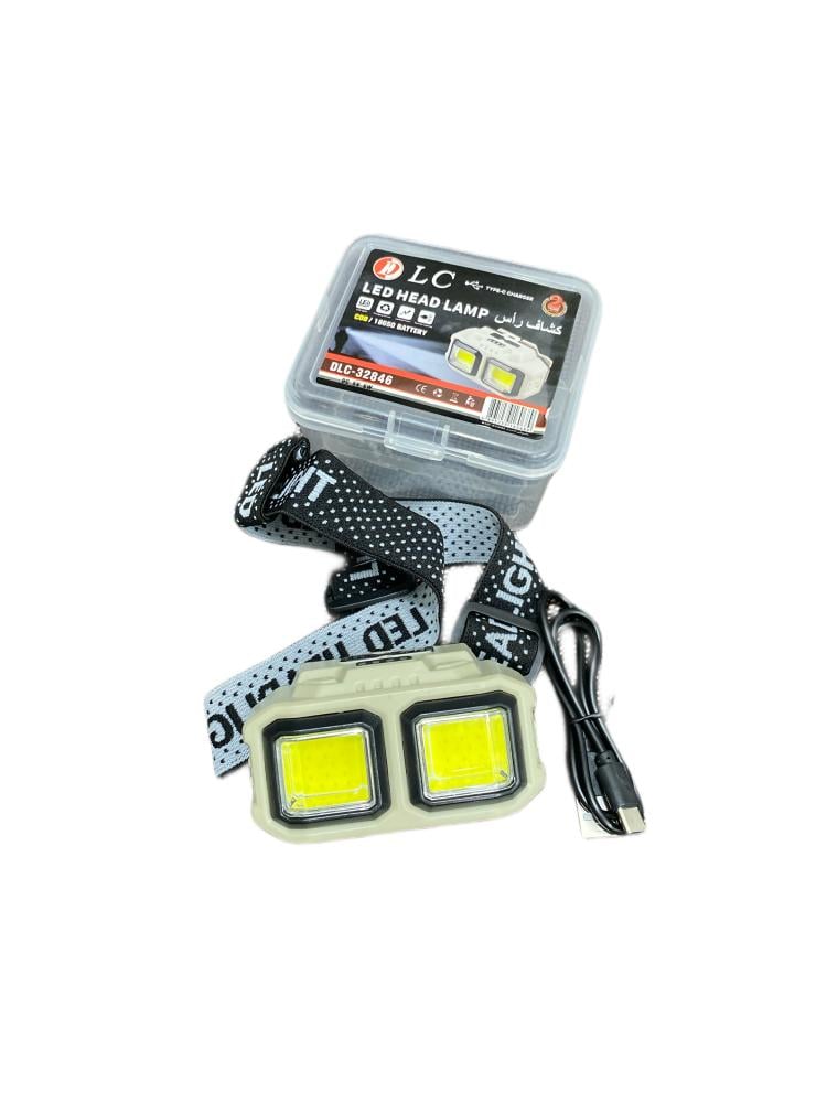 كشاف رأس شحن تايب سي عدستين بدرجتين إضاءة وقارئ للبطارية مع حزام بجودة عالية للرأس
