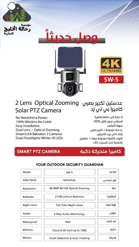 احصل على كاميرا مراقبة مبتكرة تعمل بالطاقة الشمسية ومزودة بعدستين 4K، تتيح لك تحكمًا كاملاً ومراقبة متقدمة عبر هاتفك المحمول. تتميز هذه الكاميرا ببطارية مدمجة ضخمة ولوحة شمسية، مما يجعلها مثالية للمراقبة المستمرة دون الحاجة إلى توصيلات أو شبكات واي فاي قريبة.