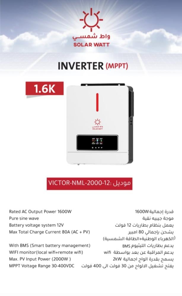 - يدعم ألواح شمسية بقدرة إجمالية تصل إلى 2000 واط