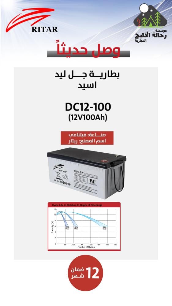 بطارية جافة بقدرة 100 أمبير مصممة خصيصًا لأنظمة الطاقة الشمسية. تتميز بالجودة العالية والمتانة، مما يجعلها خيارًا مثاليًا لتخزين الطاقة الشمسية والاستخدام في التطبيقات المختلفة. مصنوعة في تايوان وتضمن أداء موثوقًا وطويل الأمد.