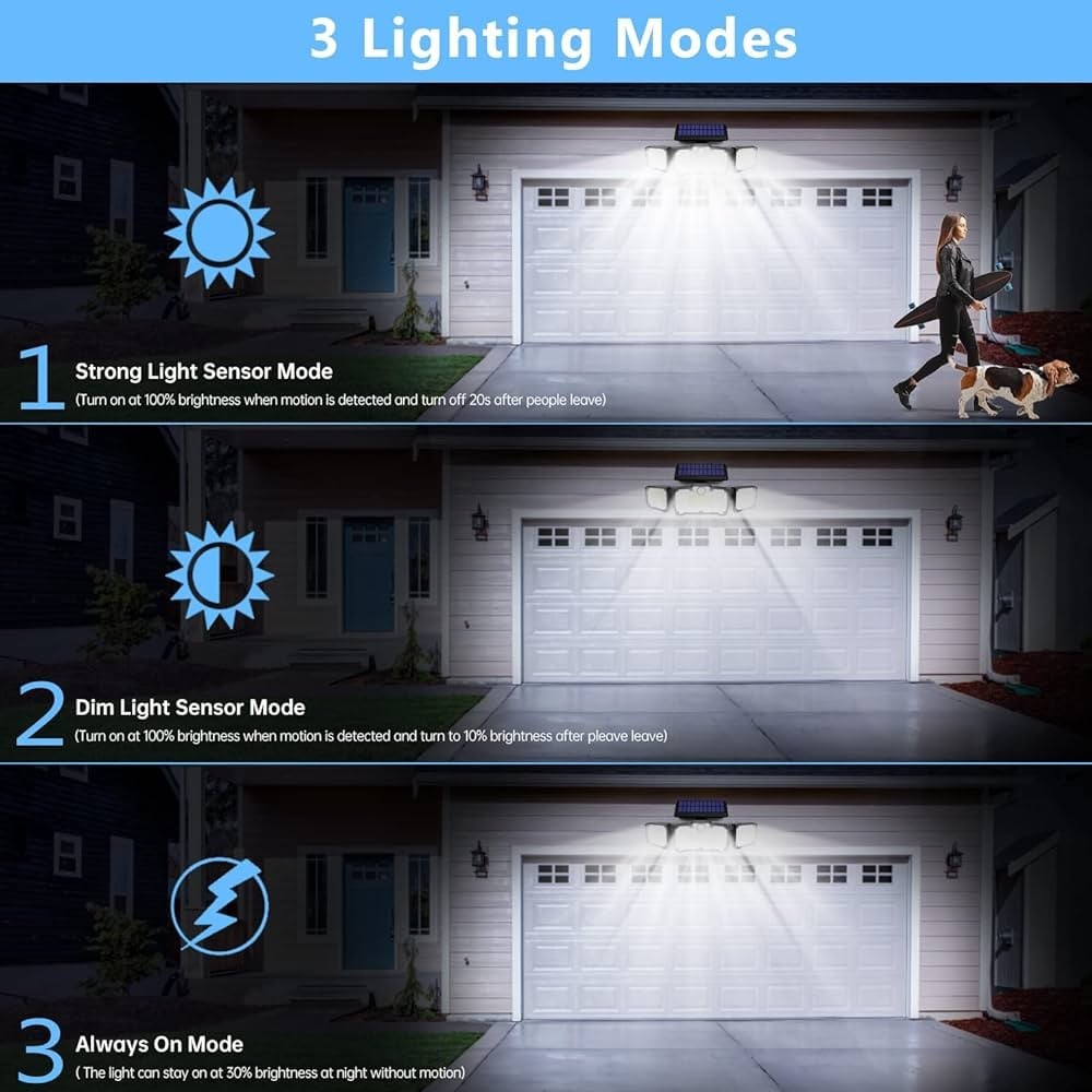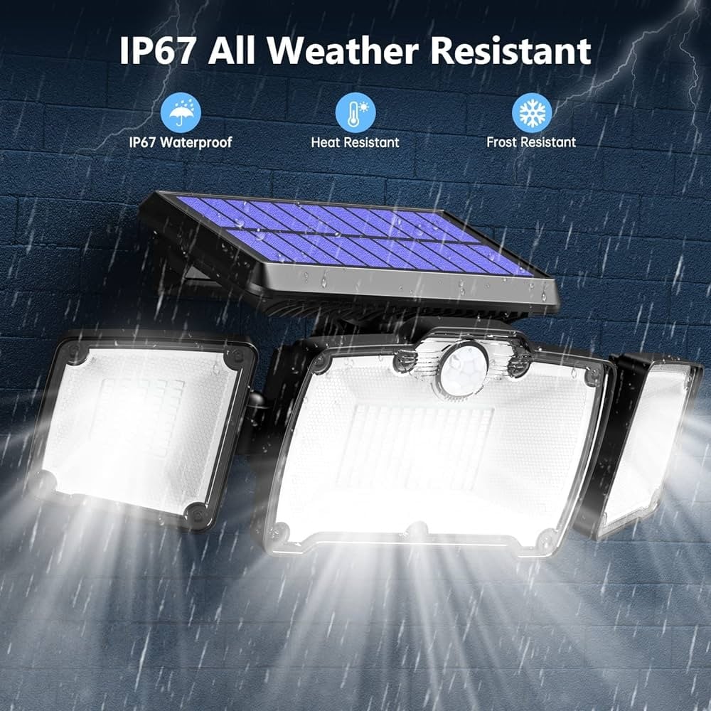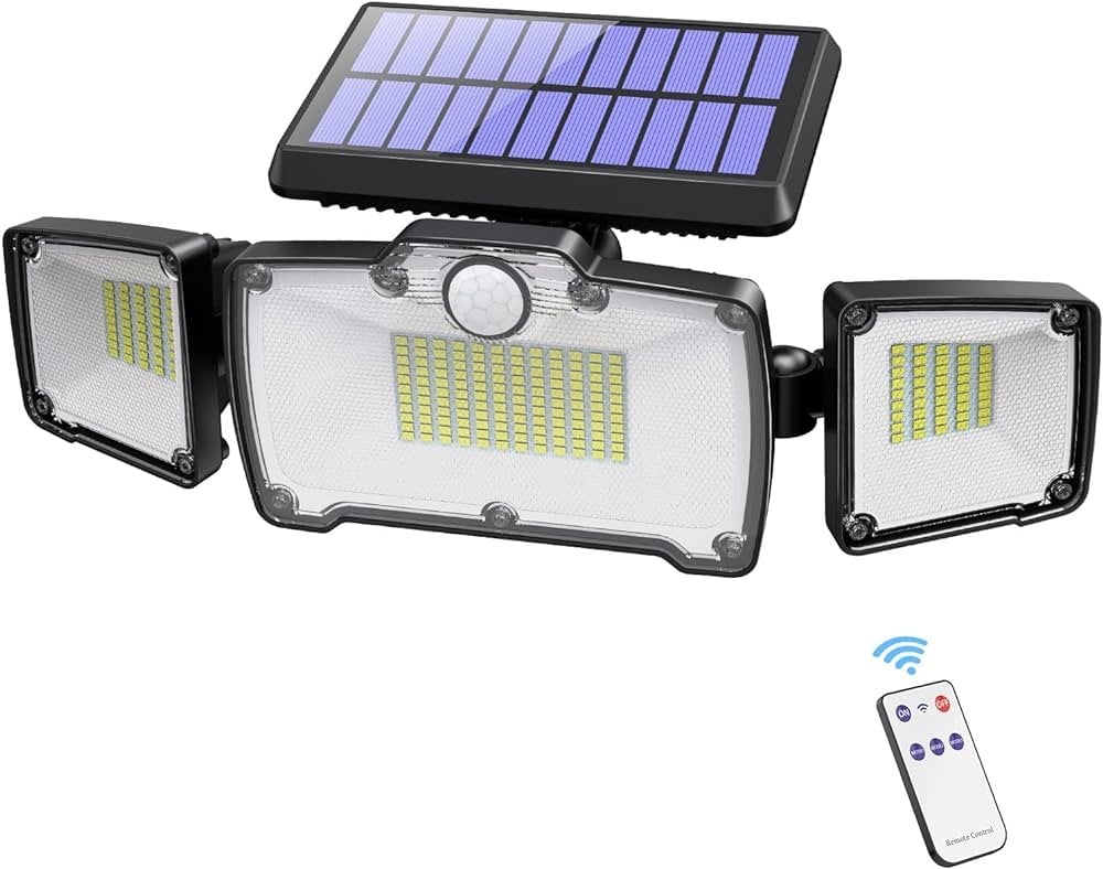 احصل على إضاءة قوية ومستدامة لمحيط منزلك أو حديقتك مع كشاف الطاقة الشمسية الثلاثي الأضواء المزود بمستشعر حركة. يتميز هذا الكشاف بتصميم مبتكر يتيح لك توزيع الضوء بشكل متساوٍ في جميع الاتجاهات، مما يضمن تغطية واسعة وإضاءة قوية. يأتي مع جهاز تحكم عن بعد لتوفير الراحة في التشغيل والتحكم.